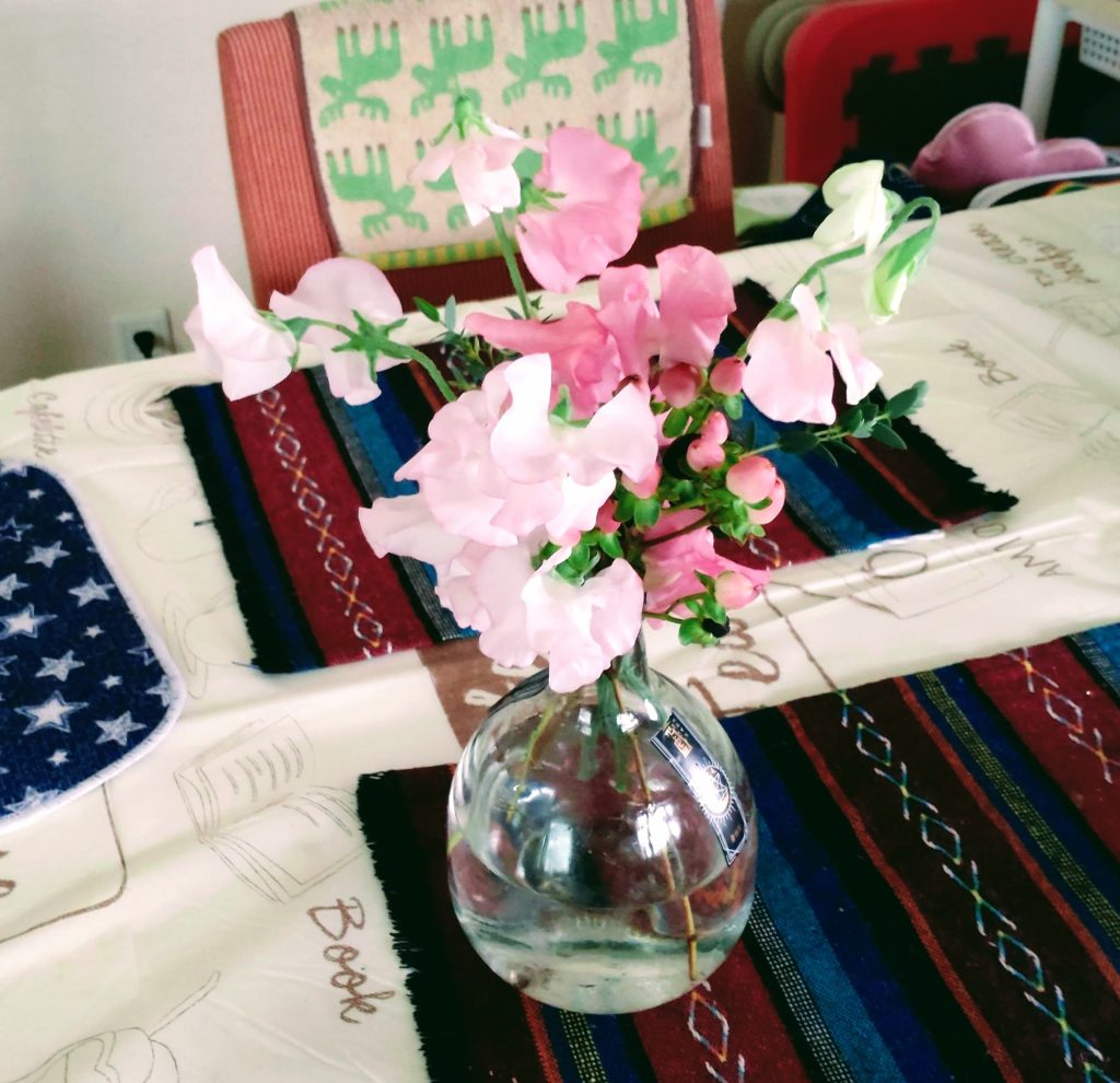ピンク系のスイートピーが10本で、なんと290円でした。迷わず購入。お部屋が明るくなります。お花はいいですねぇ。
