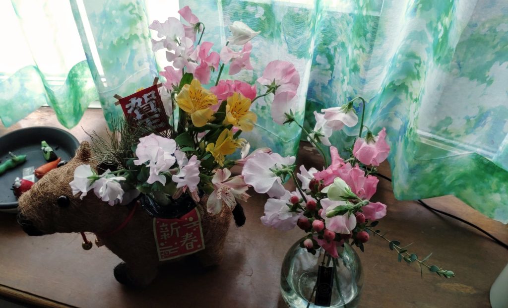 10本って意外と多いです。馬の花器にもふんだんに飾りました。