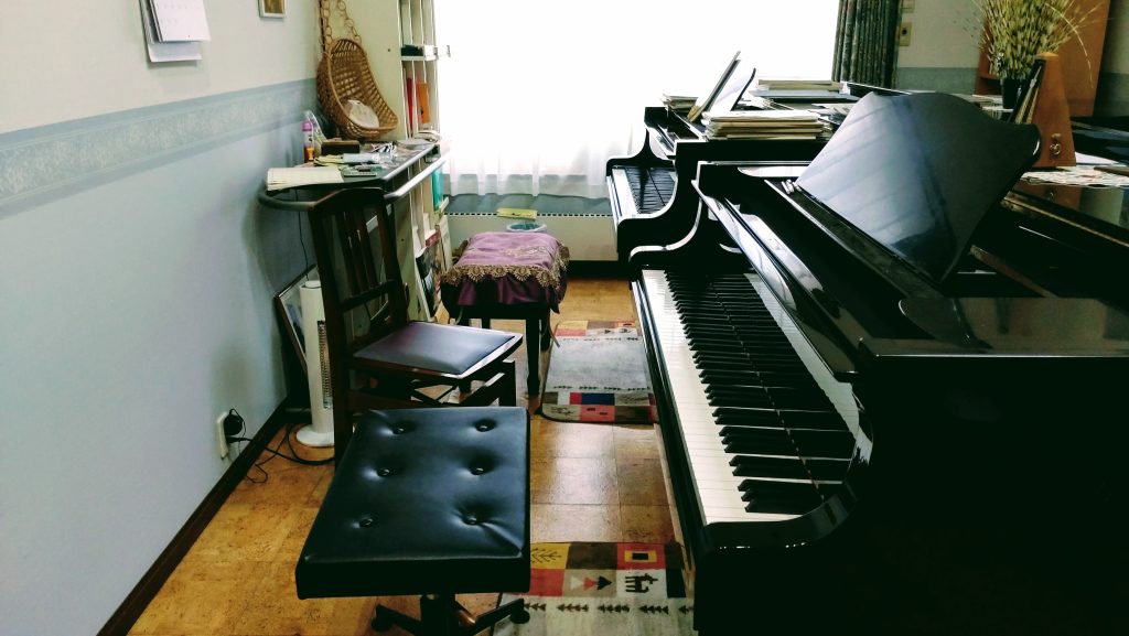生徒さんも最近この椅子が気に入っているようです。座面が柔らかくクッション性があるので、つい正座してしまう生徒さんもいます。軽いので連弾などのときに、さっと動かせるのが便利です