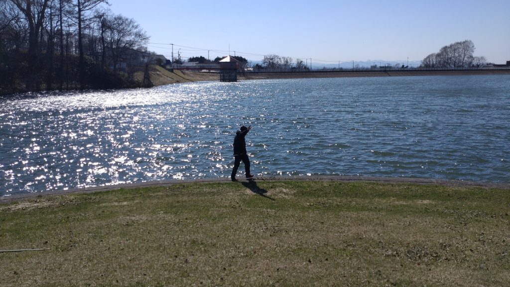 公園の中でトレーニング。池がキラキラと輝いて綺麗でした。歩くのは、どこでも出来るから、毎日30分を怠りません。ピアノも毎日30分練習すると、驚く程、上達します!
