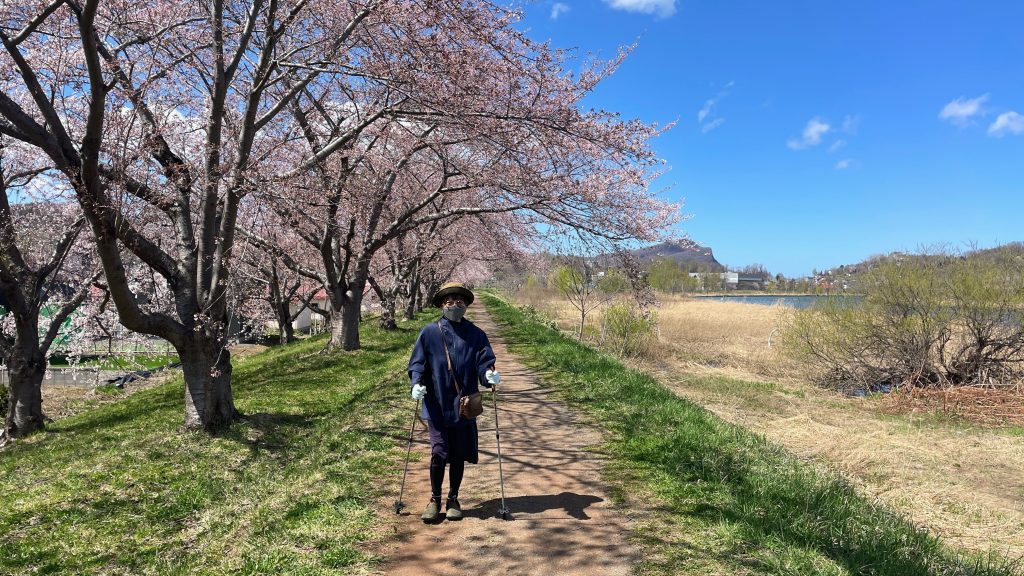 桜が咲きだしたので、余市川土手沿いを歩いていると、自転車に乗った女性がから「今日は下ではなく(グランド)、上を歩いているんですね」と声を掛けられました。いつも見られているのだなと思って、ちょっとビックリ!