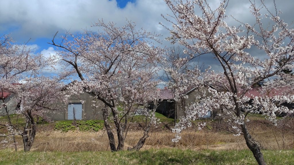 昨日に続き、余市川土手沿いをウォーキング。今日も観光客がお花をしていましたが、まだ風が冷たく気温も低い。余市川は5分咲きといった感じです。