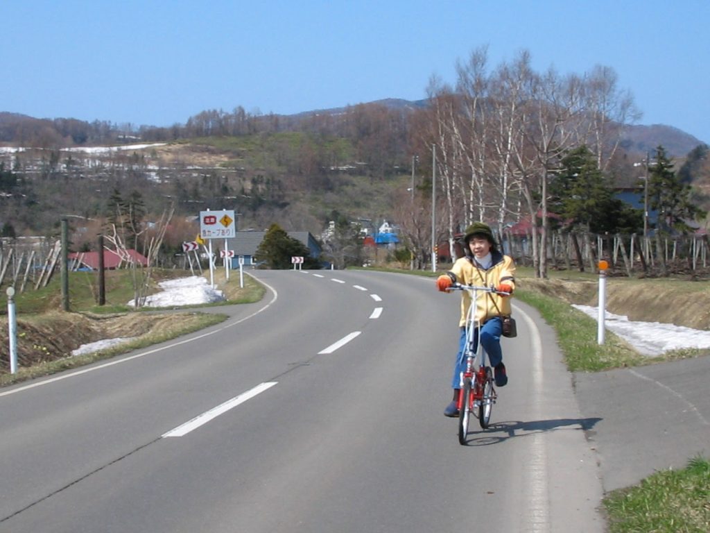 新しい自転車が届いいて間もない頃。よく蒲鉾やさんまで自転車で行き、お店でアツアツを食べるのが楽しみでした。この自転車は乗らなくなったし、古いので処分しました。