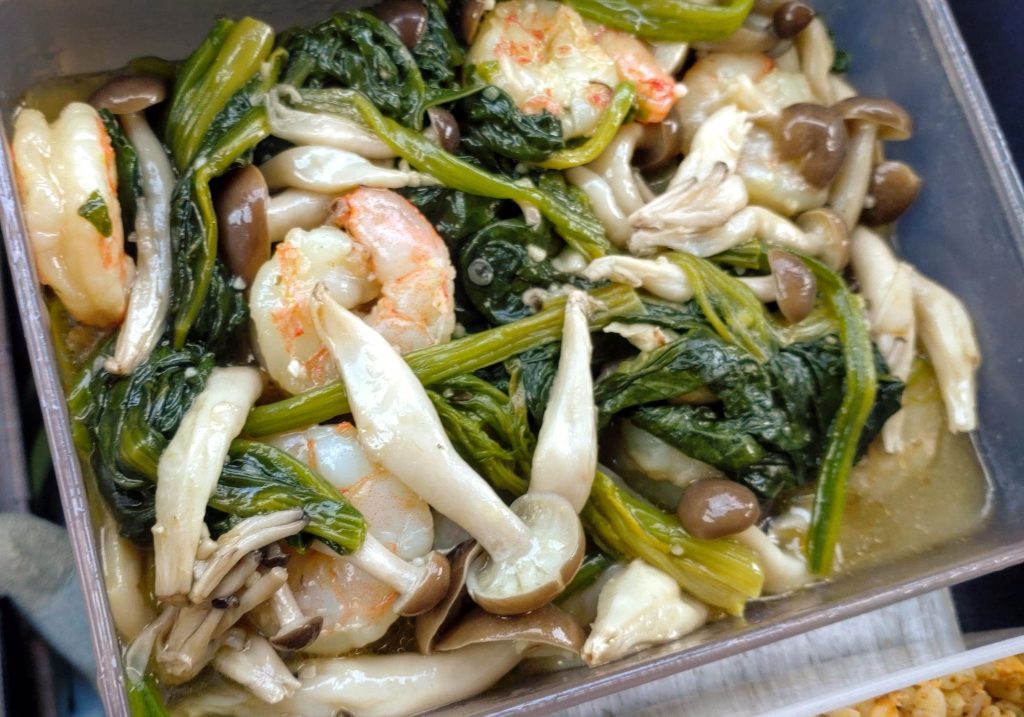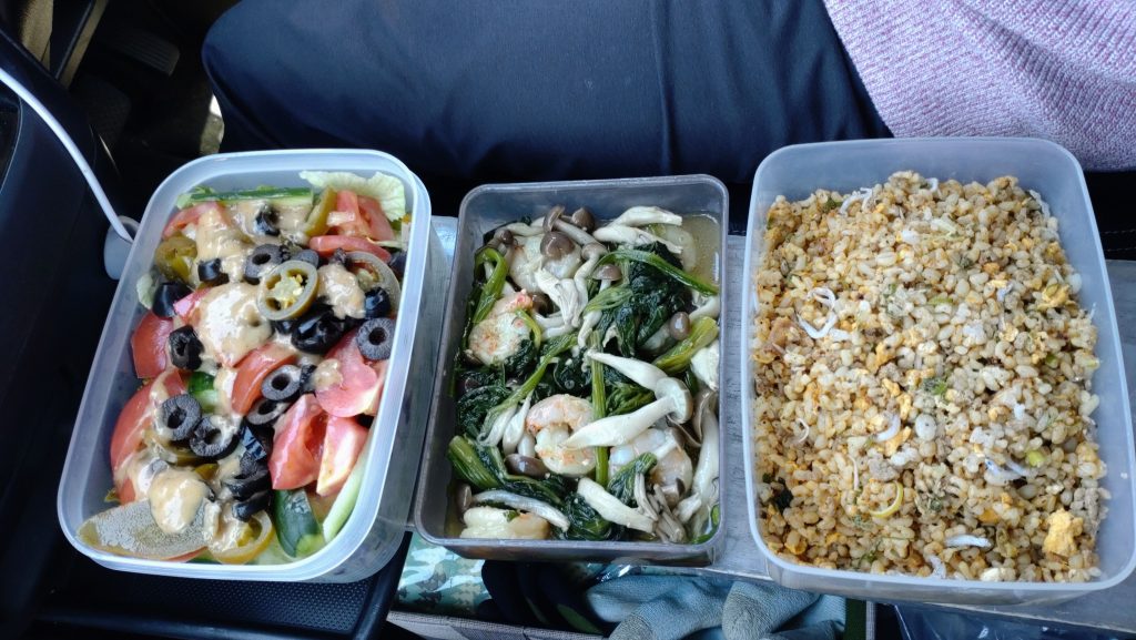黒松内の道の駅でブランチ。お気に入りの「親鳥」を最近は小さい方を選びます。サラダは私が用意しますが、激ウマのチャーハンと、ほうれん草・キノコ・海老のお惣菜は、はじめさんが作りました。デパ地下よりも上をいくレベルです。