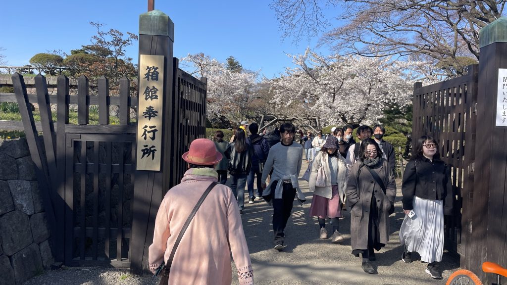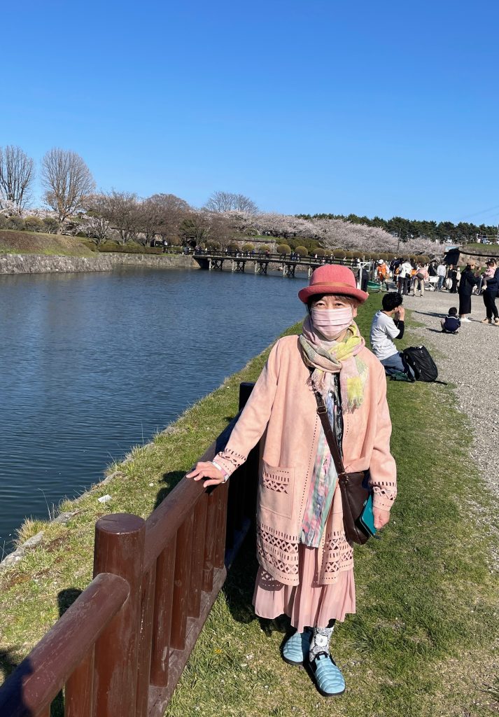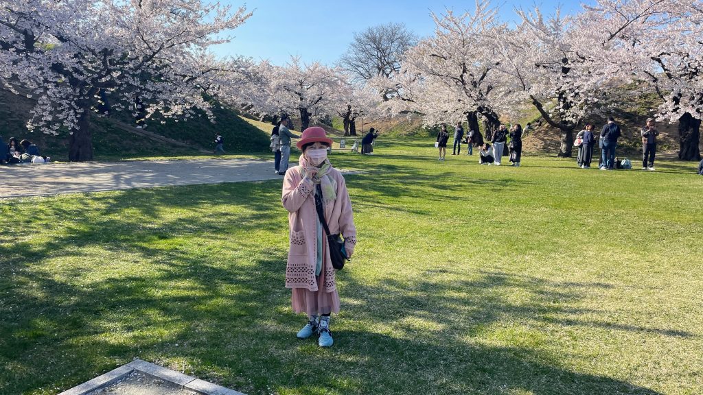 五稜郭公園の駐車場に粘り強く待って並び、午後3時過ぎに入れました。中国人は少ないですが、それでも昨年より入場者数が増えているように思いました。ピンクは苦手なカラーですが、今日は思い切り桜色にしました。