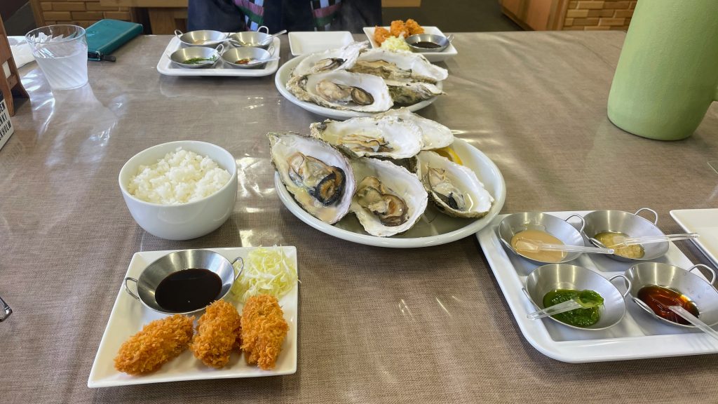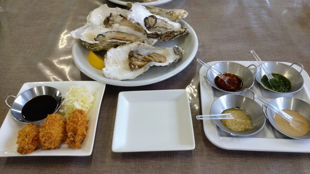 私は蒸し牡蠣5個と牡蠣フライ。朝はサラダとゆで卵とスープで、けっこう満たされたので、丁度良かった。牡蠣が大きいので、満足度が高い