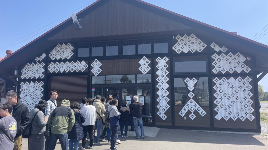 七飯の道の駅で野菜をドッサリ買ってから、知内へ向かいました。10時50分に到着すると、既に行列ができていました。凄い人気!