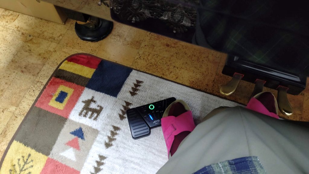 お昼前に2曲ほどの小品をフットペダルで譜めくりしてみました。しっかり踏まない譜めくり出来なかったり、踏むタイミングが難しいと思いました。慣れないと、演奏に支障が出ます。