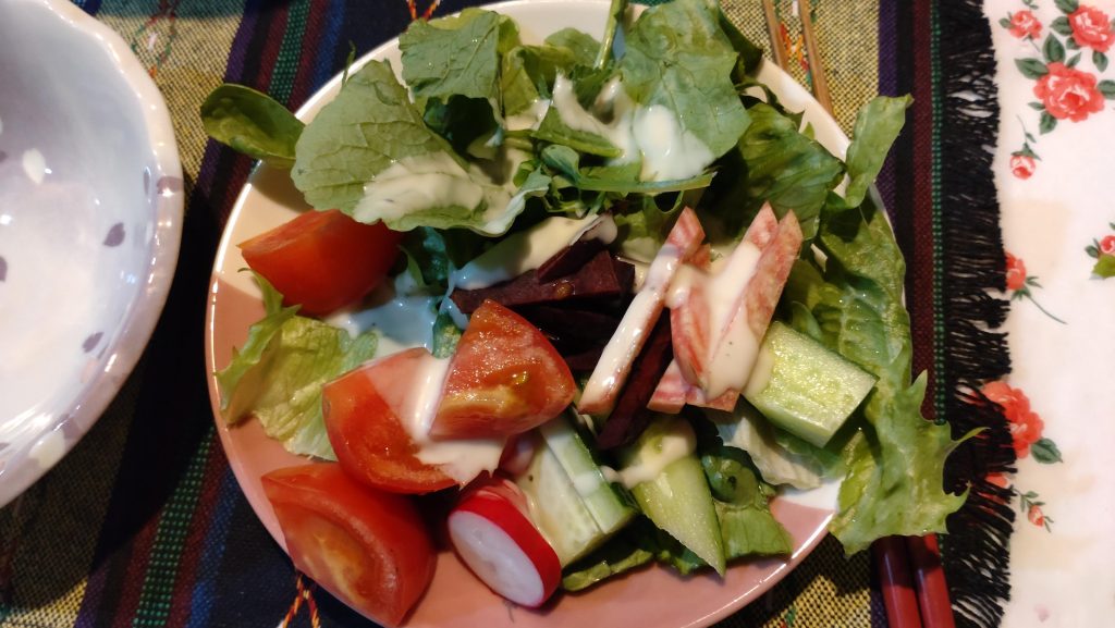 私はサラダの担当。同期会の会場は以前行ったことがあるJRタワーの最上階。会費は高め設定。キャンセルは料金が発生するから、ちょっと緊張します。(笑) これに2次会、宿泊となると難しいだろうから、1次会が終わったら、はじめさんが迎えに来てくれるという。それにしても。卒業してかあ全く会ったことがない人の方が多いので、どんな風に変わったのか、もしくは、あまり変わっていないのか….