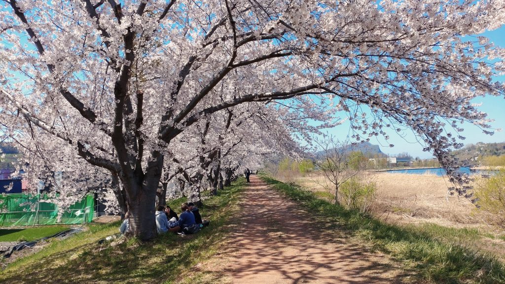 フリードに戻る時、桜の樹の下でお花見をしている外人さんグループを見ました。此処からは余市のシンボルであるシリパも見えて素敵です。こちら側だけアスファルト舗装されていません。人もそれほど多くなく、駐車場にもスムーズに入れらるので余市川の美しい桜を見に来て下さい。
